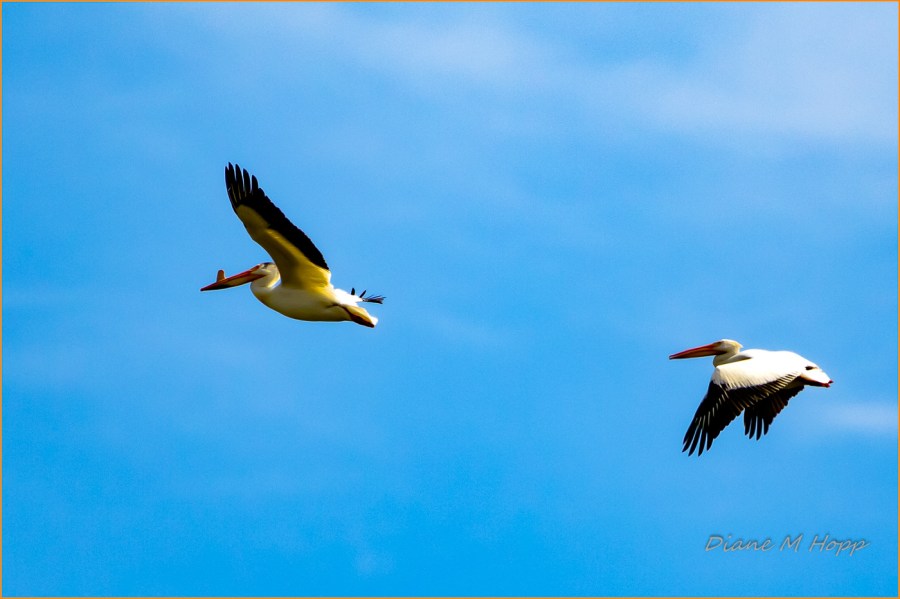 Scavenger Hunt #21 – Bird in Flight – White Pelicans – Diane Hopp