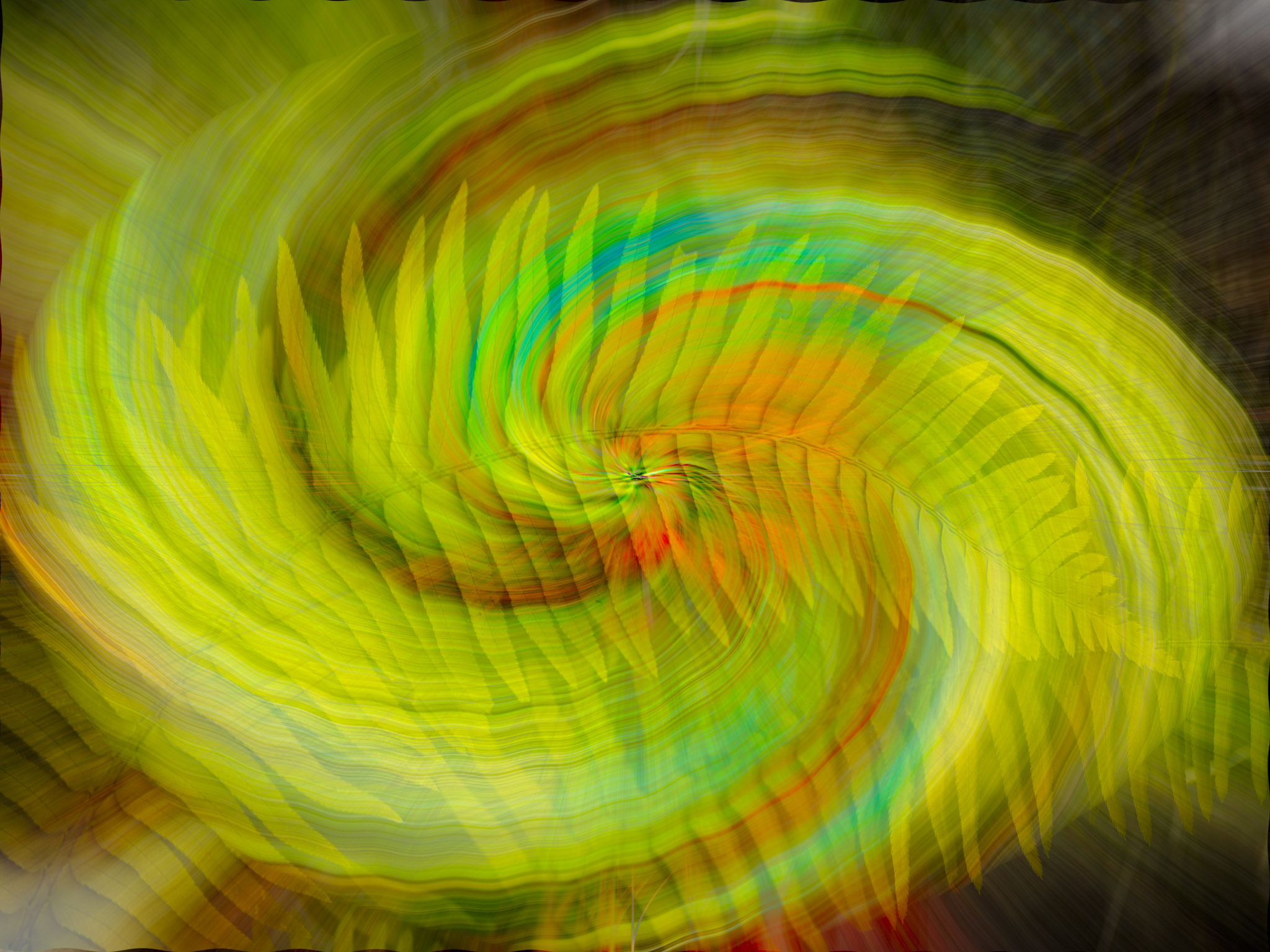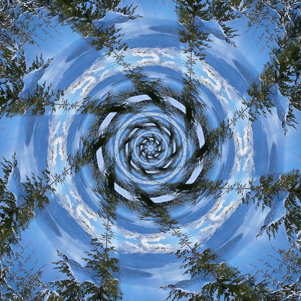 I can get some interesting effects by taking the original photo that I used to create the twirl and then blending it with the twirl, adjusting opacity and fill as required.