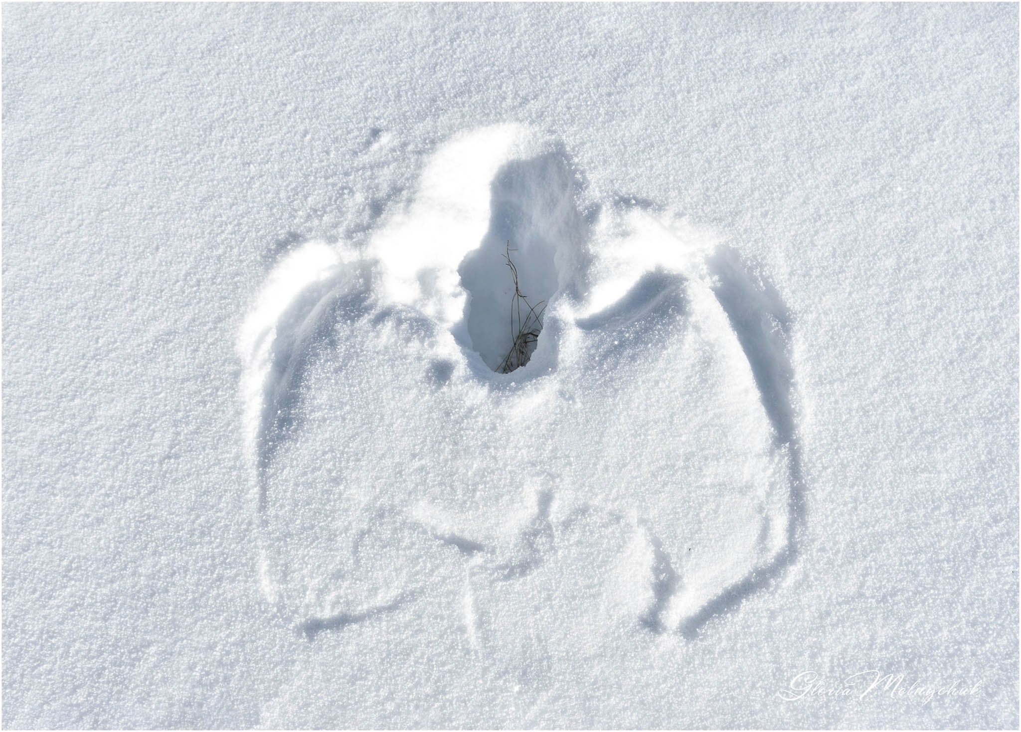 Off Again, Gone Again ©Gloria Melnychuk~ Great Grey Owl Snow Imprint ~ Cariboo January 2021
