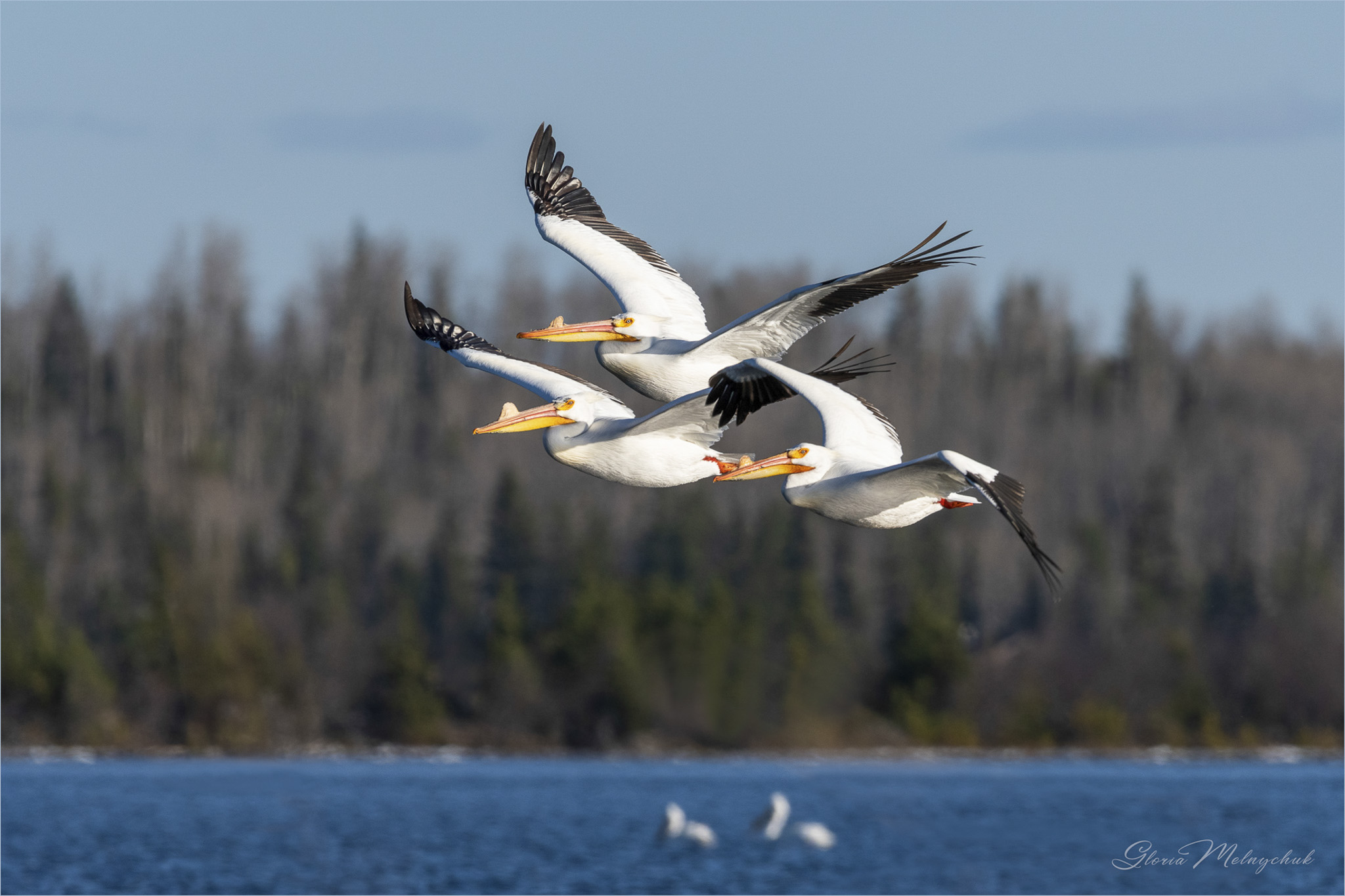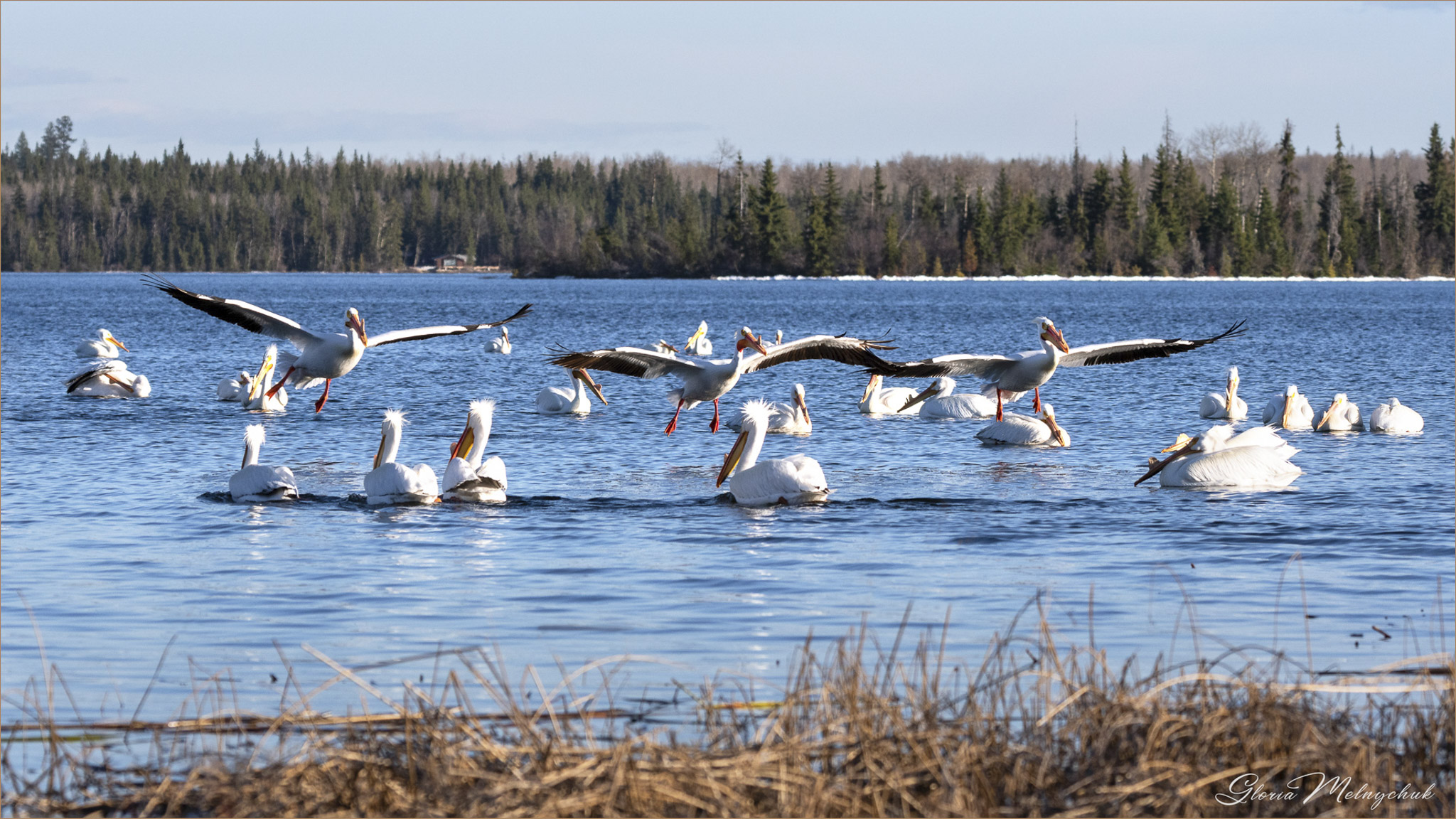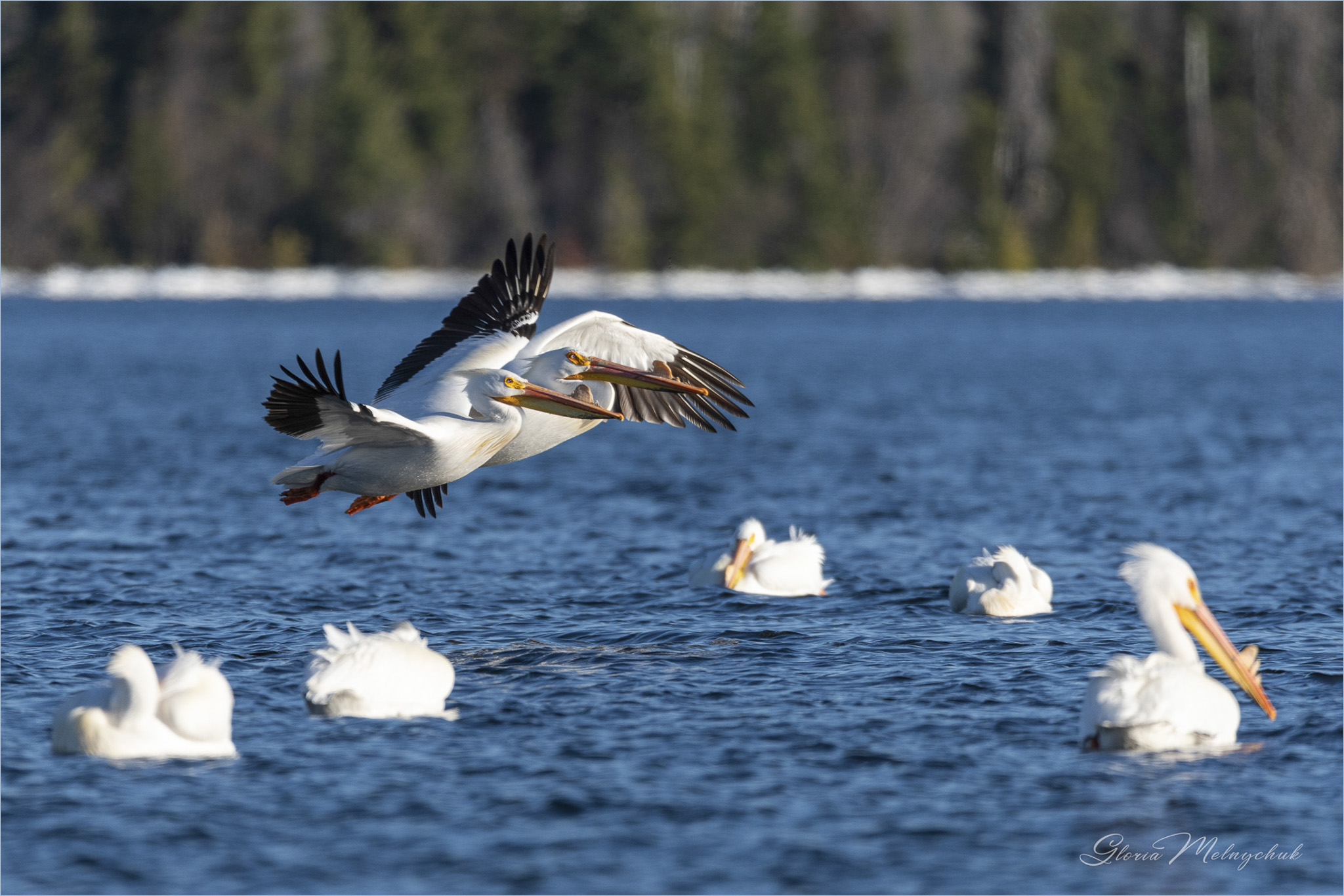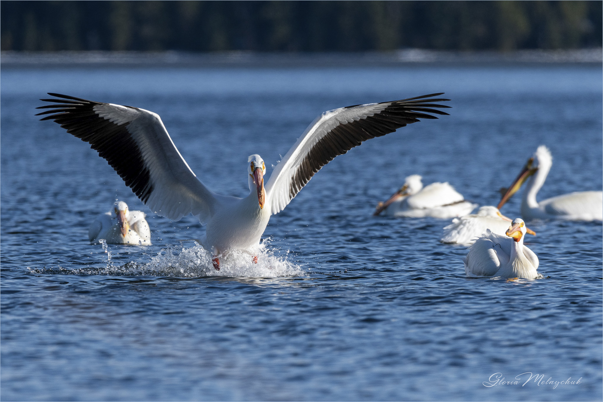 Pay Attention © Gloria Melnychuk – American White Pelicans Green Lake May 2020