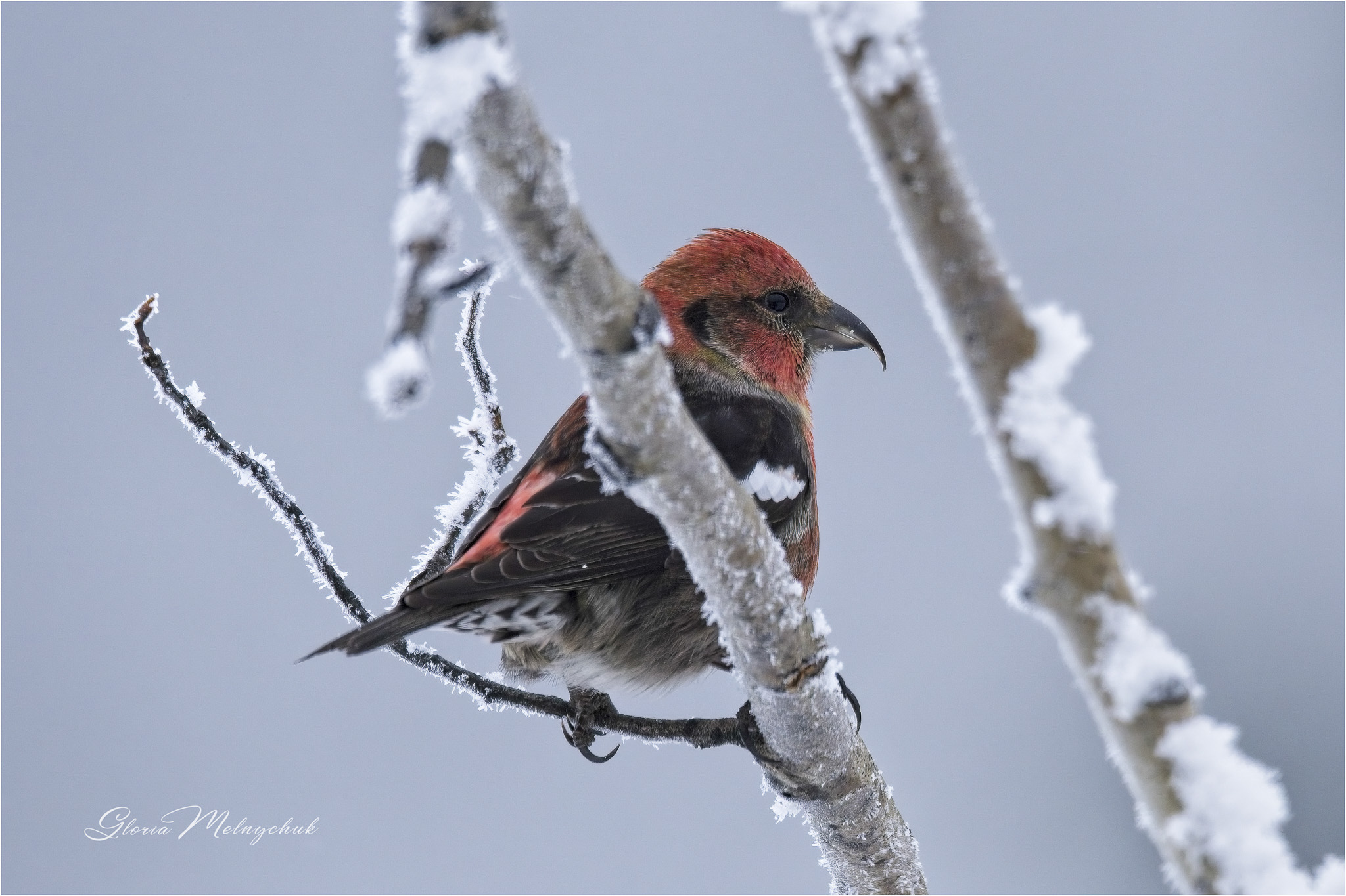 Pine Grosbeak Watercolor © Gloria Melnychuk
