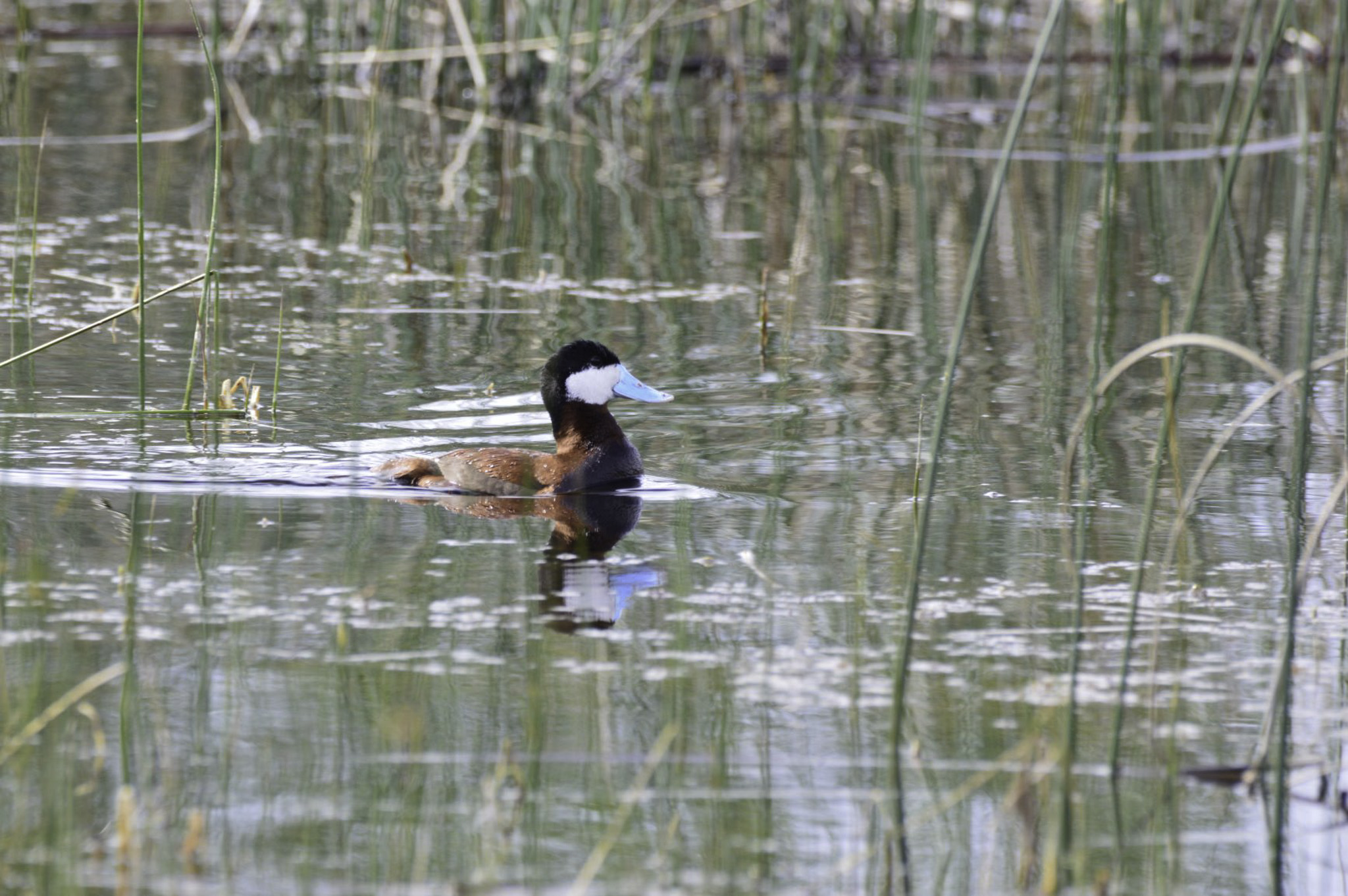Great Blue Heron and Terrified Duck – Maureen Nelson